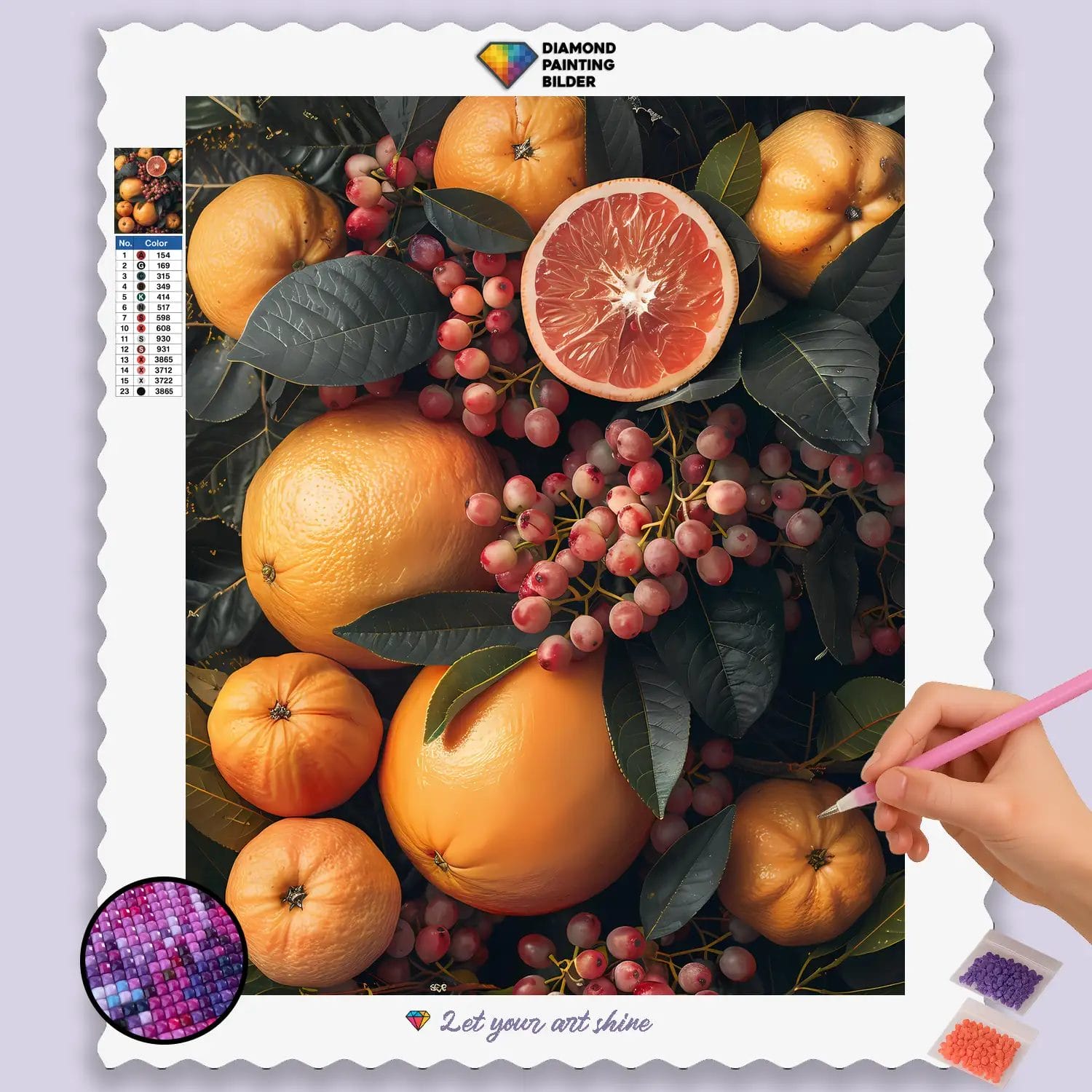 Holen Sie sich eine Explosion saftiger Aromen mit unserem erfrischenden Diamond Painting „Exotische Orangen und Beeren“! Dieses lebhafte Motiv fängt die sonnige Pracht von Orangen und die leuchtende Vielfalt von Beeren ein, die gemeinsam eine unwiderstehliche Farb- und Formkomposition bilden. Jeder glitzernde Stein hilft Ihnen, die knackige Frische der Beeren, die zitrische Lebendigkeit der Orangen und die appetitliche Textur der Früchte zum Leben zu erwecken. Es ist eine Hommage an die Gaben der Natur, an gesunde Ernährung und an die pure Freude, die der Genuss von diesen exotischen Früchten mit sich bringt. Ein ideales Diamond Painting für alle, die eine moderne Küche lieben, Wert auf Wohlbefinden legen und eine Portion tropischen Flair in ihr Zuhause bringen möchten.