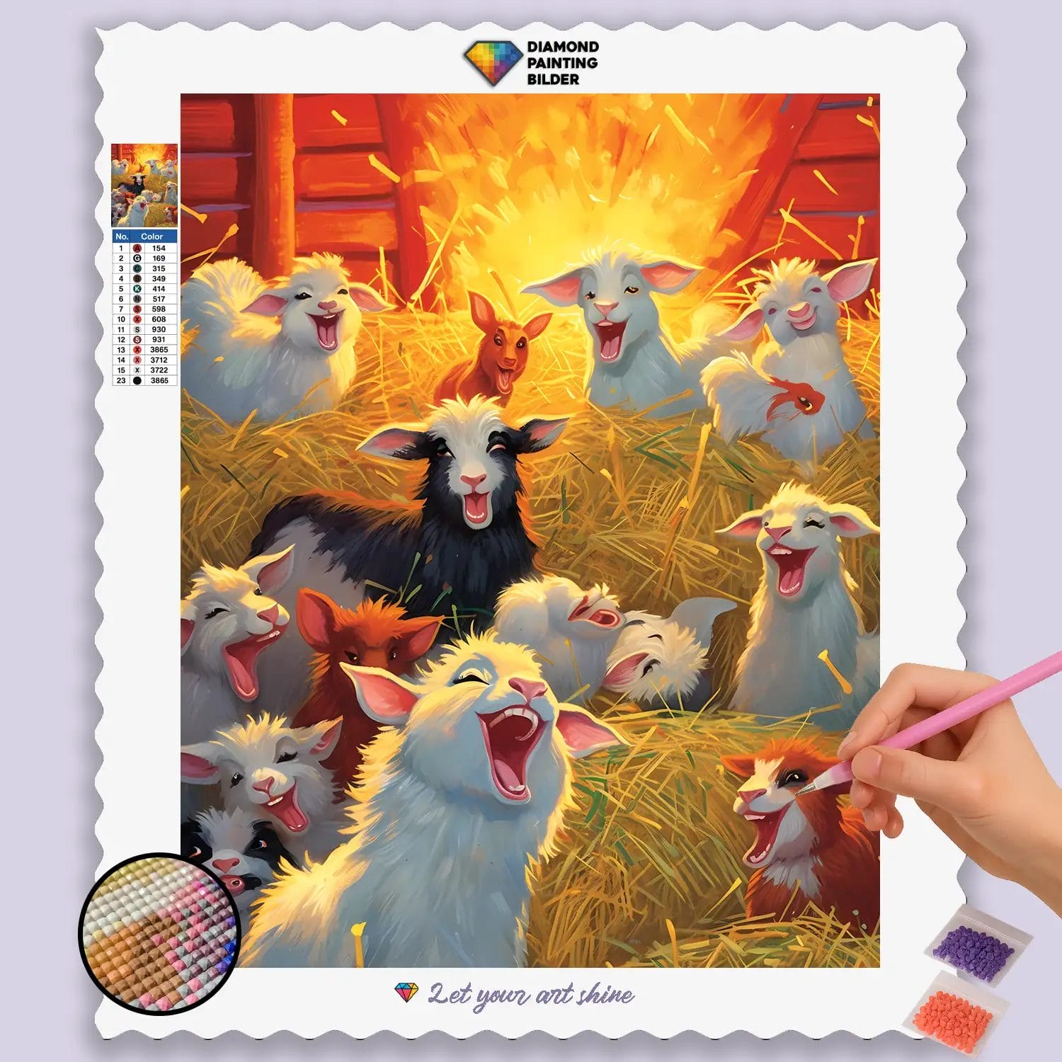Entdecken Sie den ausgelassenen Charme des Landlebens mit unserem fröhlichen Diamond Painting „Fröhliche Ziegen“! Dieses herzerwärmende Motiv fängt die ansteckende Lebensfreude von Ziegen ein, die spielerisch und unbeschwert ihre Umgebung erkunden. Jeder glitzernde Stein hilft Ihnen, ihre ausdrucksvollen Gesichter, die markanten Hörner und die lebendige Energie dieser liebenswerten Bauernhoftiere zum Leben zu erwecken. Es ist eine Hommage an die unbeschwerte Natur, an die Neugier und an die einfachen Freuden, die Tiere in unser Leben bringen. Ein ideales Diamond Painting für alle, die das Landleben lieben, sich nach Leichtigkeit sehnen und eine Portion ländlichen Witz in ihr Zuhause bringen möchten.
