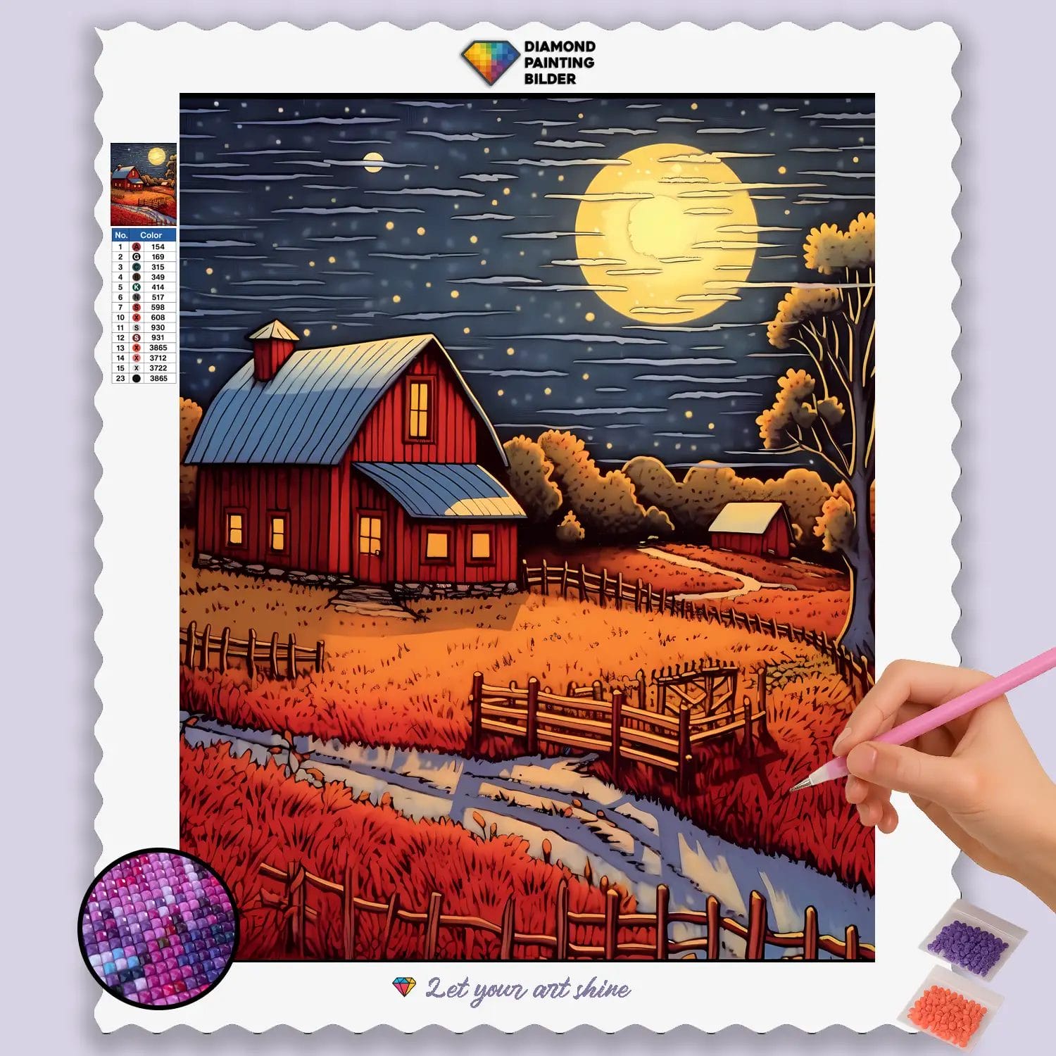 Gestalten Sie ein funkelndes Meisterwerk, das die Seele beruhigt und eine Aura von Frieden und Beschaulichkeit schafft. Dieses hochwertige Diamond Painting Set bietet nicht nur eine wunderbar entspannende und kreative Auszeit, sondern auch ein atemberaubendes Ergebnis, das Sie stolz in Ihrem Zuhause präsentieren können. Ob als charmanter Blickfang in Ihrem Wohnzimmer, eine inspirierende Ergänzung Ihrer Sammlung oder als perfektes Geschenk für Naturliebhaber und Träumer – dieses Diamond Painting Bild ist eine fabelhafte Möglichkeit, die Anziehungskraft eines Hauses in schönen Feldern in einem glänzenden Kunstwerk festzuhalten.